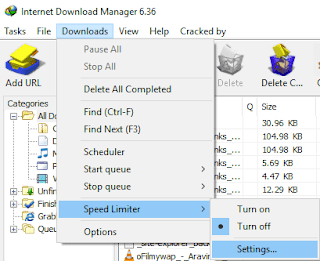 - Open IDM and then Downloads>Speed Limiter>Settings…